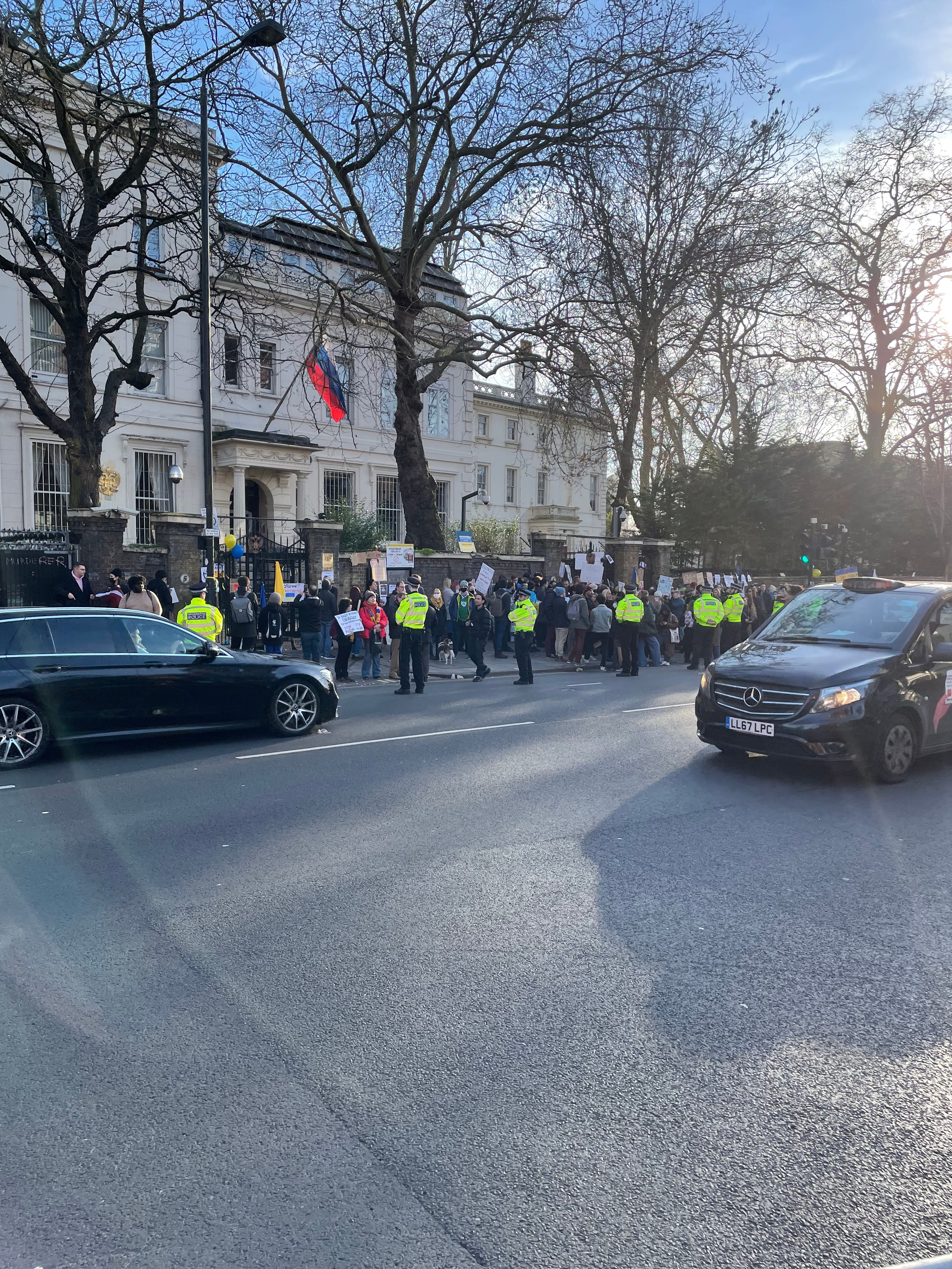 We’d been out for a long walk with friends on Saturday and ended up on Bayswater Road almost by chance. It took a few seconds to work out why police lights were flashing persistently further down the road. Of course, protests outside the Russian embassy.